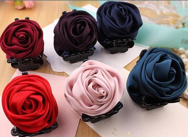 ✨Kẹp tóc càng cua hoa hồng vải lụa nhiều màu sang trọng
