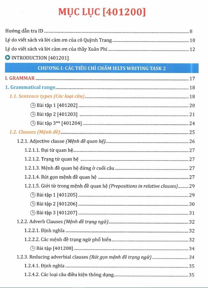 • Chương 3: Thực hành theo hướng dẫn. Phần này sẽ cung cấp bài mẫu, bộ ý tưởng tham khảo và các lỗi sai thường gặp trong bài viết.