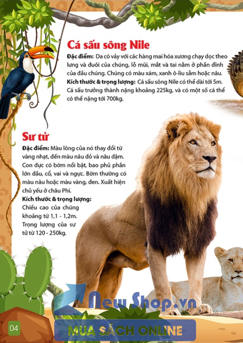 Mua tại TiktokKhám Phá Thế Giới Động Vật 5 Châu - Châu Phi Đây là bộ sách giới thiệu về các loài động vật 5 châu lục gồm: Châu Á, Châu Âu, Châu Mỹ, Châu Úc, Châu Phi. Nội dung viết một cách khái quát, cơ bản về đặc điểm nhận dạng, trọng lượng và kích thước của mỗi loài. Những loài vật tiêu biểu ở mỗi châu lục được chọn sắp xếp một cách tương đối, không theo một tiêu chí chính xác tuyệt đối nào. Trong bộ sách, chúng ta sẽ bắt gặp những động vật phân bổ ở cả 5 châu lục, đó là những loài có thể thích nghi với nhiều môi trường sống khác nhau ở cả 5 châu .