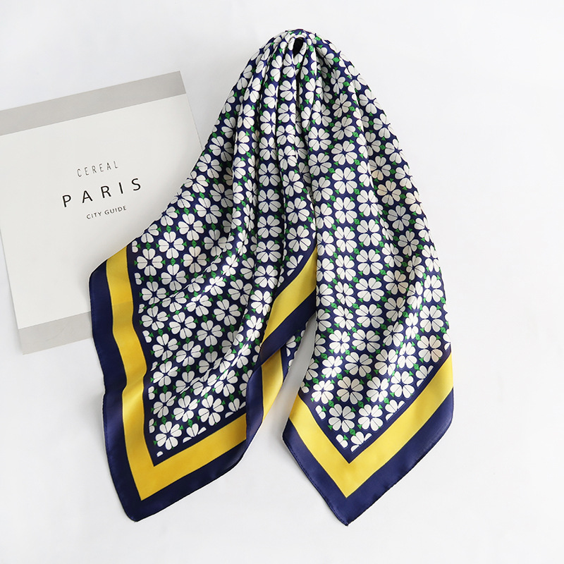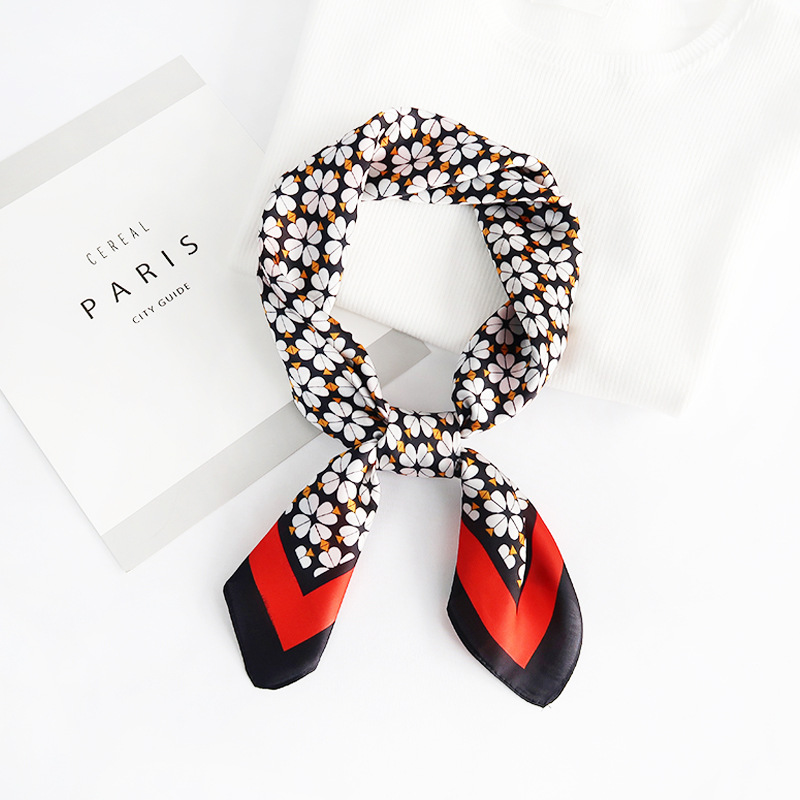 Khăn turban- Khăn vuông bản nhỏ 50x50 thiết kế họa tiết xinh Kc08  Khăn choàng lụa cao cấp bản to, phong cách Hàn Quốc sang trọng K01