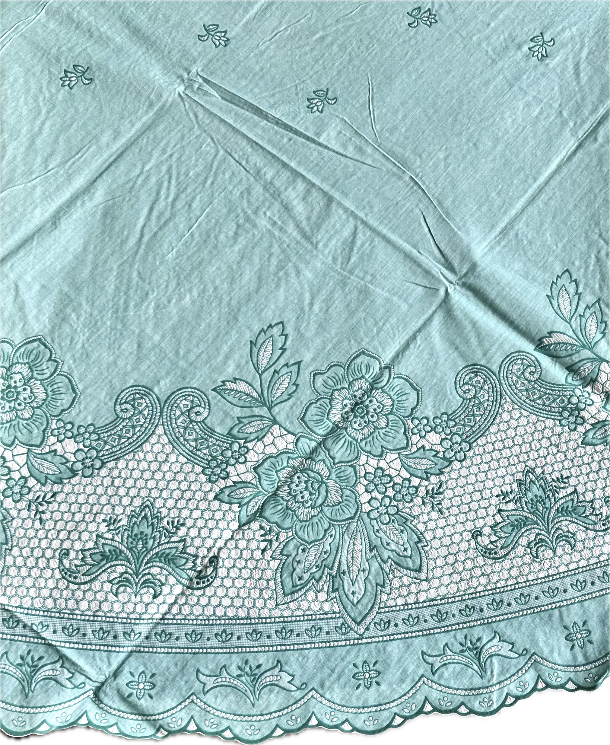 ✨Khăn trải bàn PAULEE FY116 tròn - đường kính 178cm, hoa văn, màu xanh ngọc, nhựa PVC dẻo, không thấm nước