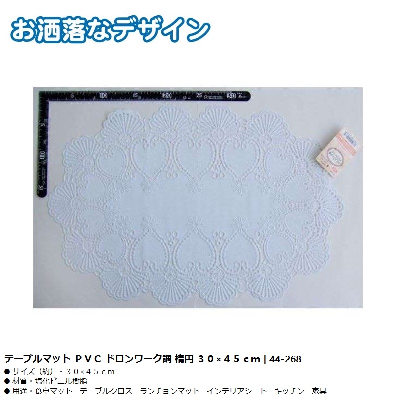 Khăn trải bàn PVC hình Oval 30x45cm ■ Xuất xứ: Nhật Bản | MADE IN JAPAN ■ NSX: Seiwa-Pro Co., Ltd (Japan) ■ Kích thước:300 x 450 x 1 Hmm ■ Màu sắc: Màu trắng ■ Chất liệu: -