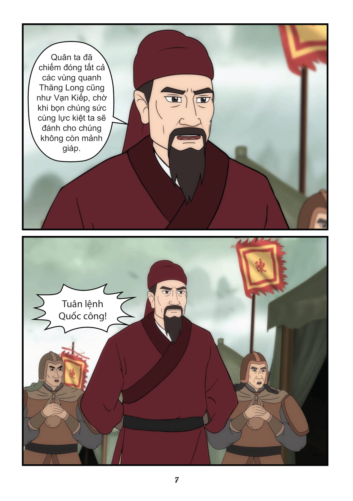 Mua tại TiktokBộ sách “Truyện tranh lịch sử Việt Nam – Khát vọng non sông” gồm hàng trăm tập, giới thiệu ngắn gọn, sinh động những truyền thuyết đầy tính nhân văn và những sự kiện, những nhân vật nổi tiếng trong lịch sử hàng nghìn năm của dân tộc Việt Nam. Thoát Hoan gặp phải sự cản phá của quân dân nhà Trần trên đường rút chạy – Sau trận tấn công lên Thăng Long không thành lại biết thuyền lương của Trương Văn Hổ bị đánh chìm, Thoát Hoan bèn rút quân về cố thủ tại Vạn Kiếp. Trước tình hình đó, Quốc công tiết chế Hưng Đạo vương Trần Quốc Tuấn đã lên kế hoạch phản công tiêu diệt toàn bộ sinh lực địch. Quân Nguyên rút chạy về nước. Quân dân nhà Trần giành chiến thắng oanh liệt