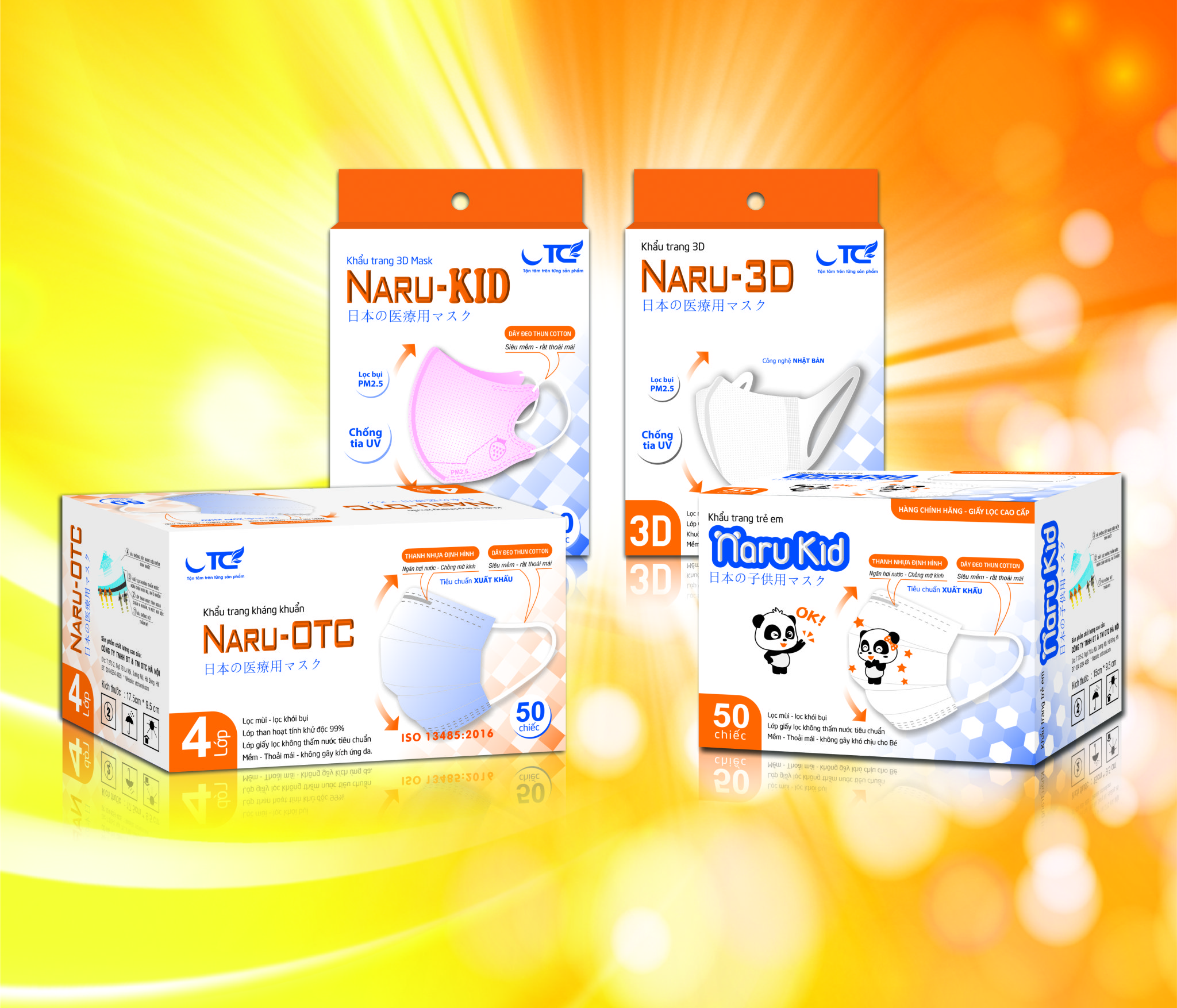 Khẩu trang kháng khuẩn 4 lớp người lớn NARU-OTC hộp 50 chiếc Lọc mùi, lọc khói độc, khí thải và bụi mịn lên đến 99% Các lớp vải không dệt được xử lý công nghệ hoạt tính công nghệ cao nhằm hạn chế tối đa việc lớp vải bị xù và kích ứng da cho người sử dụng. Lớp giấy lọc không thấm nước tiêu chuẩn, ngăn tia và giọt bắn có hiệu quả lọc khuẩn lên đến 94,6% Hạn chế lem son môi khi đeo. Màu sắc thời trang và đa dạng. Thanh nhựa định hình cao cấp trên mũi giúp ngăn hơi nước, chống mờ khi đeo kính. Quai đeo có kích thước tiêu chuẩn và vừa vặn hạn chế gây đau tai cho người sử dụng. CÔNG TY TNHH ĐT & TM OTC HÀ NỘI Khẩu trang kháng khuẩn NARU - OTC có cấu tạo 4 lớp: Lớp thứ 1 bằng vải không dệt thẩm mỹ. Lớp thứ 2 là lớp vải kháng khuẩn công nghệ cao giúp ngăn chặn vi khuẩn, virus, khí độc hại lên đến 99%. Lớp thứ 3 là lớp giấy lọc không thấm nước tiêu chuẩn, ngăn tia và giọt bắn có hiệu quả lọc khuẩn lên đến 94,6% đối với các hạt bụi nhỏ có kích thước micron và khí thải ô nhiễm từ môi trường. Lớp thứ 4 là lớp vải không dệt NANO siêu mềm tinh khiết, tạo cảm giác thoải mái khi đeo cho người sử dụng. Quy cách đóng gói: Hộp 50 chiếc, mỗi gói 10 chiếc. Màu sắc: Xanh - Trắng - Xám Made in Vietnam Sản phẩm chất lượng cao của CÔNG TY TNHH ĐT & TM OTC HÀ NỘI Tận tâm trên từng sản phẩm