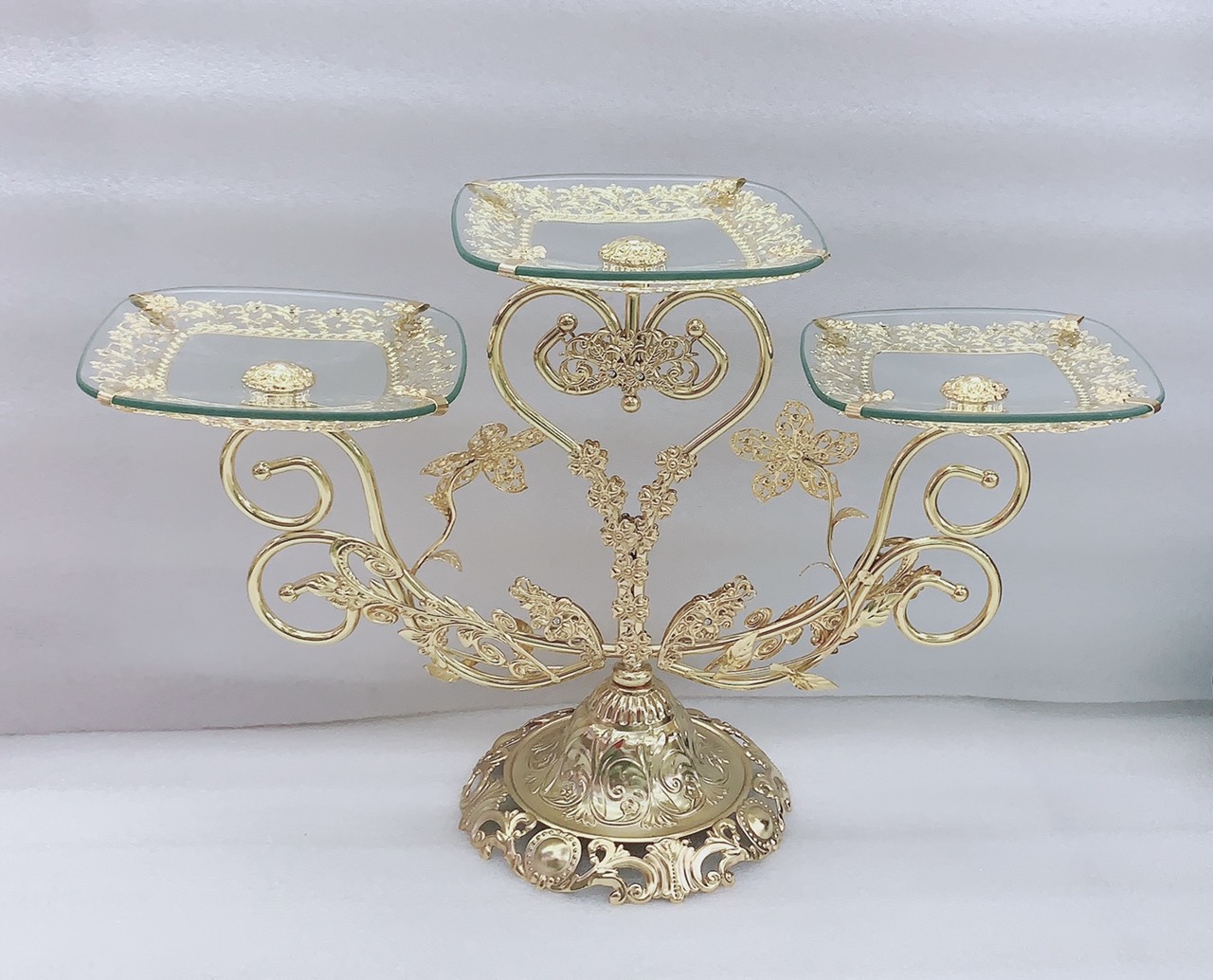 ✨KHAY ĐỰNG BÁNH KẸO HOA QUẢ THỦY TINH 3 TẦNG KHUNG KIM LOẠI - VD28