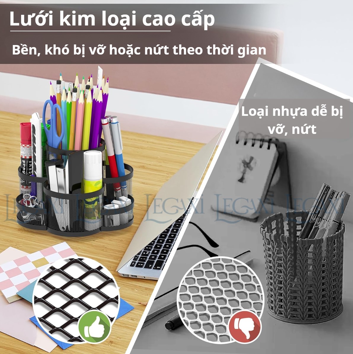 - Sản phẩm được làm từ sắt sơn tĩnh điện, thanh lịch và trang nhã, nhiều màu sắc lựa chọn - Ống cắm bút dạng lưới khô thoáng, tránh ẩm mốc. - Cắm bút giúp