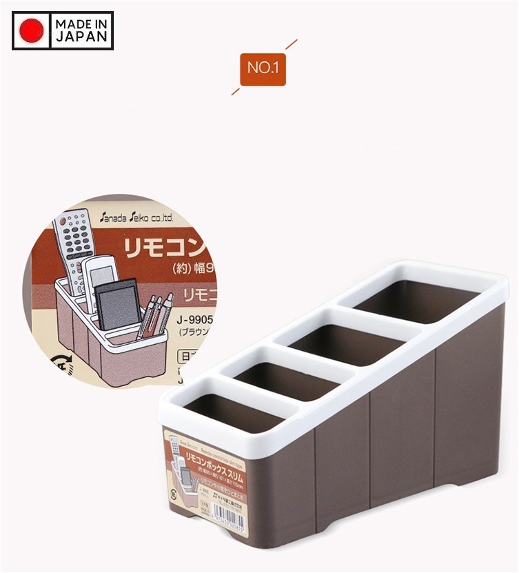 Khay đựng điều khiển/ remote 4 ngăn đa năng Nhật Bản - Màu nâu: * Chất liệu:Nhựa PP cao cấp, bền đẹp, có khả năng chịu nhiệt cao, dễ dàng vệ sinh sau khi sử