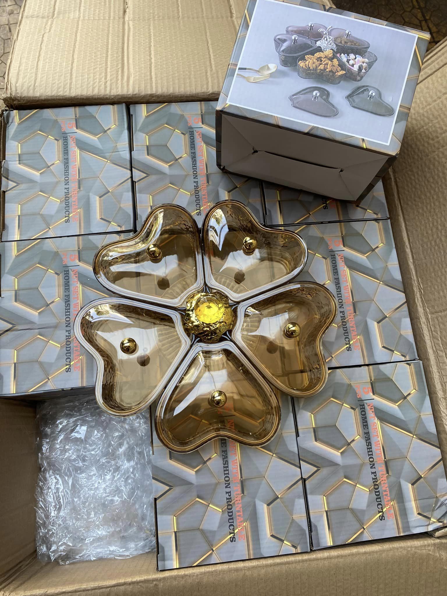 ✨Khay đựng mứt bánh kẹo xoay 5 ngăn hình trái tim, khay đựng trái cây sang trọng