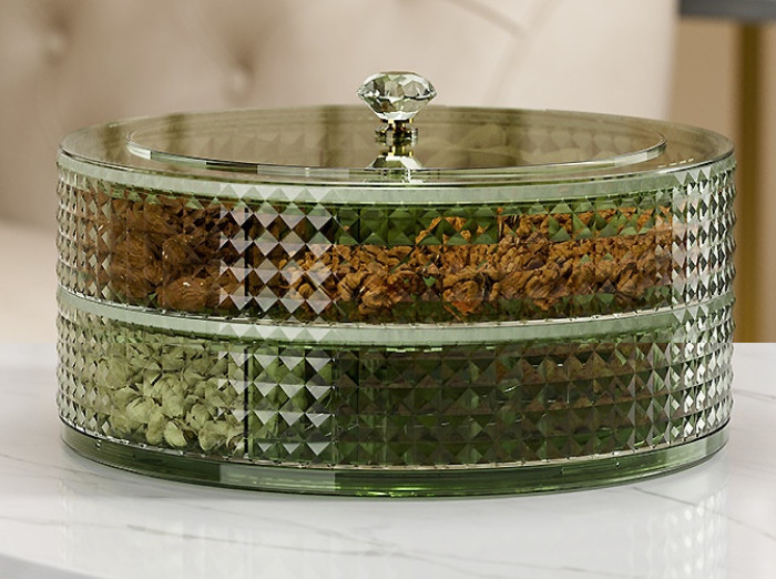 Khay Mứt Tết Pha Lê Trong Suốt, Xoay 360 Độ Cao Cấp Phong Cách Châu Âu Trang Trí Ngày Tết - Hộp Đựng Bánh Kẹo - Hàng Loại 1 - Chính Hãng MINIIN Thủy tinh
