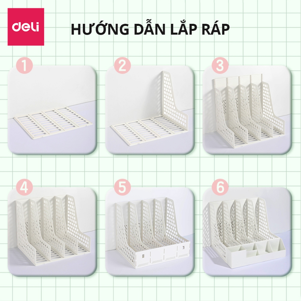 Giá Kệ Đựng Tài Liệu Deli 4 Ngăn - Kệ Hồ Sơ Văn Phòng, Giá Sách Vở Tiện Lợi Màu Pastel