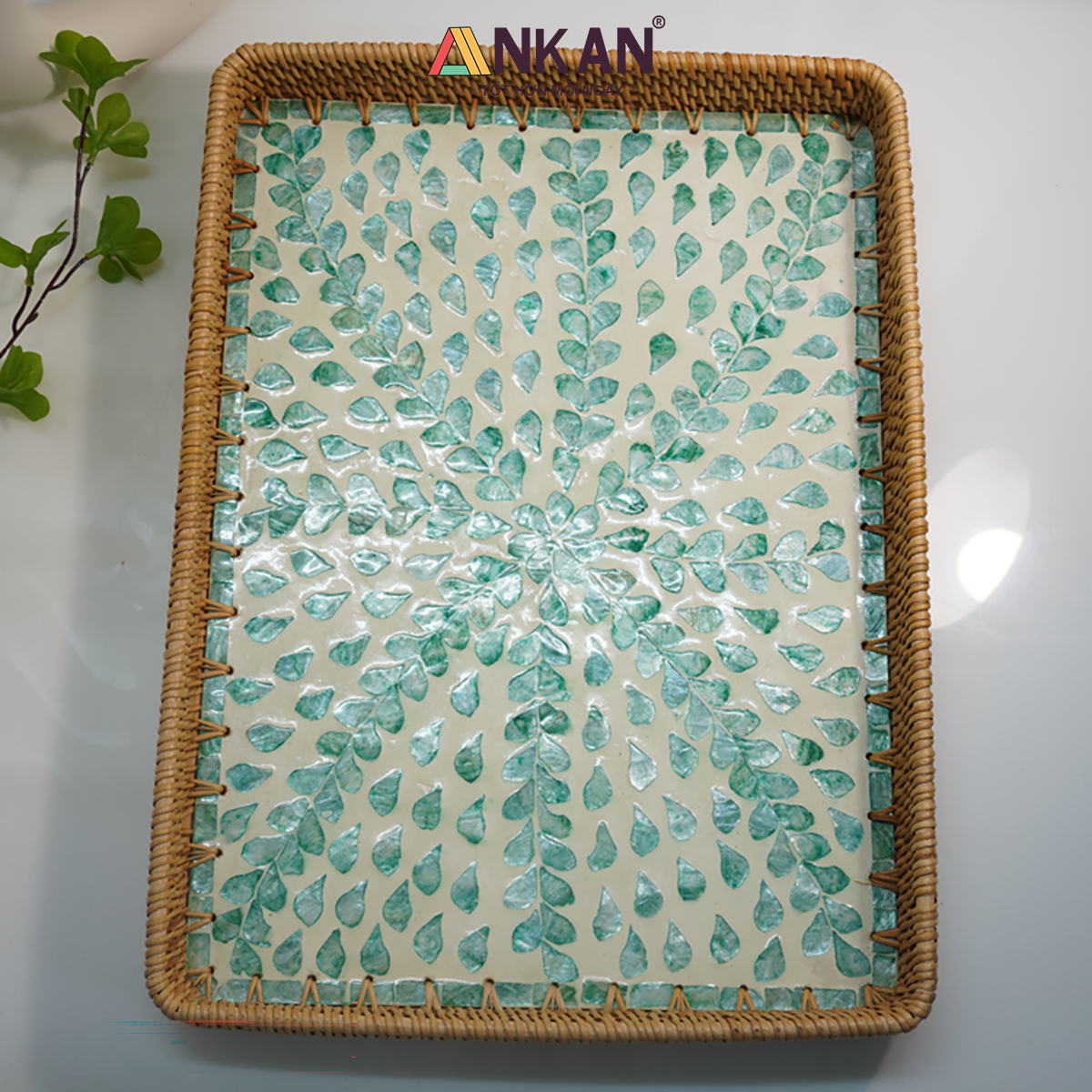 Khay Mây Khảm Trai Thủ Công ANKAN – Decor Trang Trí Nhà Cửa, Đựng Bánh Kẹo, Trái Cây