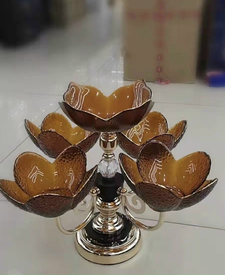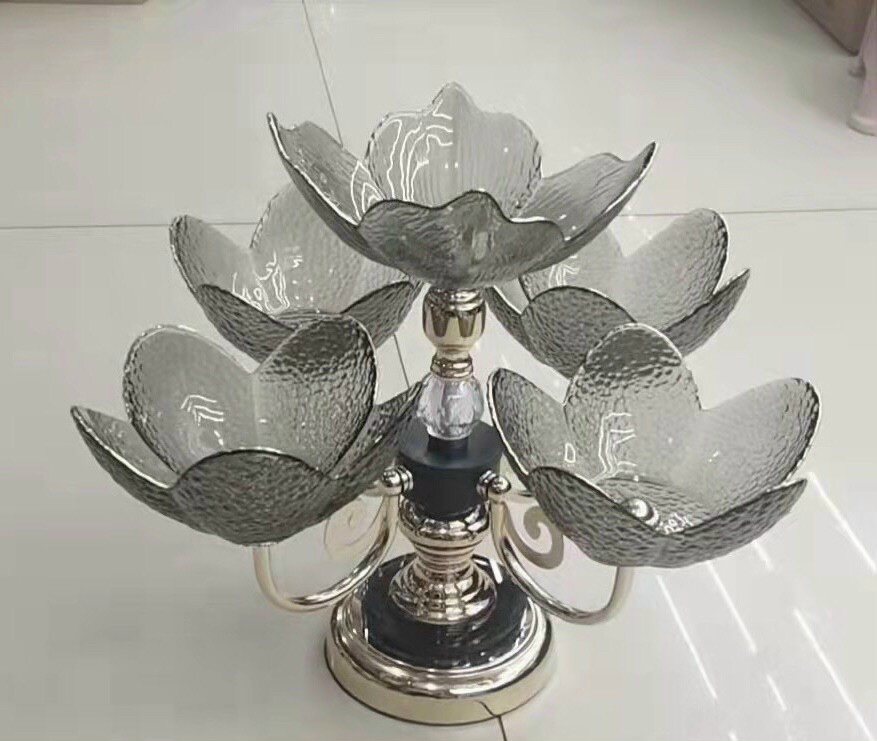 Khay thuỷ tinh đựng hoa quả cao cấp đế kim loại