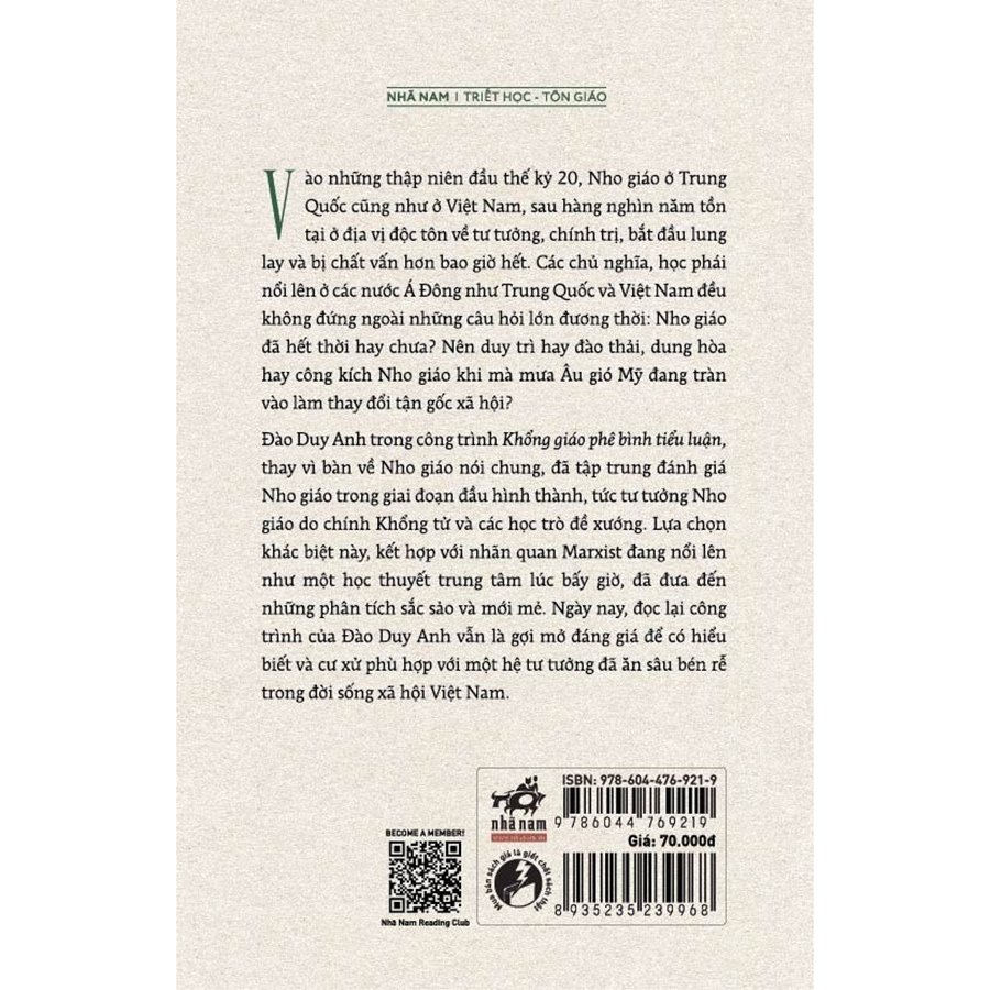 Vào những thập niên đầu thế kỷ 20, Nho giáo ở Trung Quốc cũng như ở Việt Nam, sau hàng nghìn năm tồn tại ở địa vị độc tôn về tư tưởng, chính trị, bắt đầu lung lạc và bị chất vấn hơn bao giờ hết. Các chủ nghĩa, học phái nổi lên ở các nước Á Đông như Trung Quốc và Việt Nam đều không đứng ngoài những câu hỏi lớn đương thời: Nho giáo đã hết thời hay chưa? Nên duy trì hay đào thải, dung hòa hay công kích Nho giáo khi mà mưa Âu gió Mỹ đang tràn vào làm thay đổi tận gốc xã hội? Nhằm đưa ra kiến giải riêng, Đào Duy Anh với công trình Khổng giáo phê bình tiểu luận thay vì bàn về Nho giáo nói chung, đã tập trung đánh giá Nho giáo trong giai đoạn đầu hình thành, tức tư tưởng Nho giáo do chính Khổng tử và các học trò đề xướng. Lựa chọn khác biệt này, kết hợp với nhãn quan Marxist đang nổi lên như một học thuyết trung tâm lúc bấy giờ, đã đưa đến những phân tích sắc sảo và mới mẻ. Ngày nay, đọc lại công trình của Đào Duy Anh vẫn là gợi mở đáng giá để có hiểu biết và cư xử phù hợp với một hệ tư tưởng đã ăn sâu bén rễ trong đời sống xã hội Việt Nam.