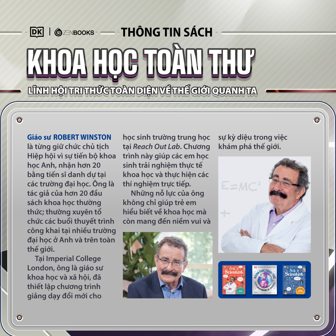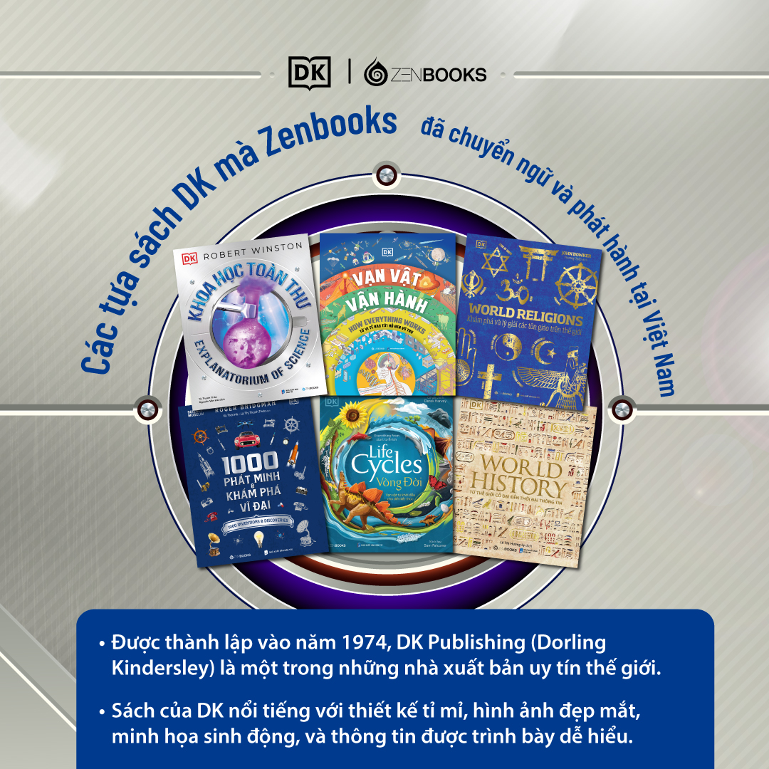 “Khoa Học Toàn Thư” nằm trong series các cuốn sách tranh khoa học - lịch sử - văn hoá được Zenbooks chuyển ngữ từ ấn bản của nhà xuất bản DK (Dorling Kindersley Limited), Anh Quốc.
