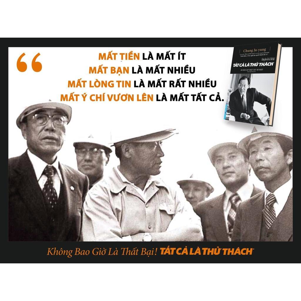 “Không bao giờ là thất bại! Tất cả là thử thách” được xem như cuốn tự truyện chi tiết về cuộc đời lẫn sự nghiệp của cố Chủ tịch Chung Ju-yung. Không chỉ thuật lại hành trình tạo lập nên một tập đoàn công nghiệp phát triển bậc nhất, cuốn sách còn chứa đựng những bài học sâu sắc về quản trị, kinh doanh cũng như đạo làm người với tinh thần “đắc nhân tâm”. Đây chính là cuốn sách gối đầu giường của rất nhiều doanh nhân Việt Nam.