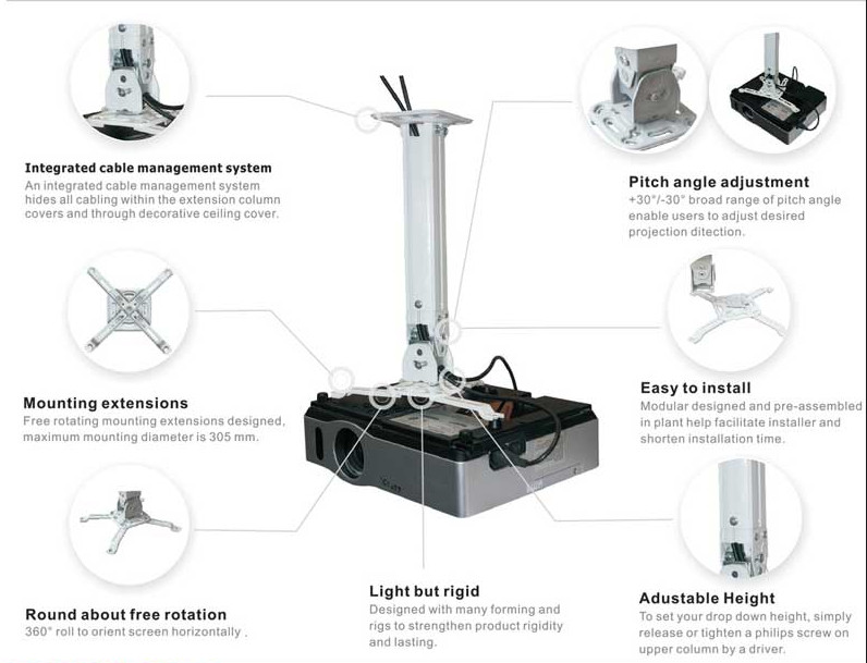 Khung treo máy chiếu North Bayou NBT817-60 60cm phù hợp sử dụng với tất cả các dòng máy chiếu trên thị trường hiện nay: Máy Chiếu NEC, Máy Chiếu Infocus, Máy Chiếu BenQ, Máy Chiếu Epson, Máy Chiếu Sony, Máy Chiếu Optoma, Máy Chiếu Panasonic, Máy Chiếu Viewsonic, Máy Chiếu Vivitek, Máy Chiếu Hitachi, Máy Chiếu Casio, Máy Chiếu Acer, Máy Chiếu EiKi, Máy Chiếu Văn Phòng, Máy Chiếu Trường Học, Máy Chiếu Hội Trường, … Ứng dụng: Khung treo máy chiếu North Bayou NBT817-60 60cm lý tưởng để lắp đặt trong các không gian như văn phòng, giảng đường, trình chiếu sự kiện, hội nghị, hội thảo, quán cafe bóng đá, chiếu phim gia đình, …. nó sẽ làm cho không gian trình chiếu trở nên sang trọng và thẩm mỹ hơn. Thông số kỹ thuật Khung treo máy chiếu North Bayou NBT817-60 60cm