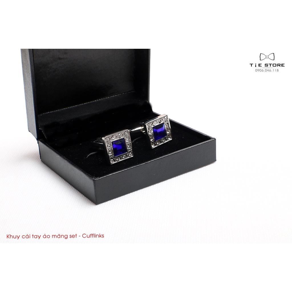 ✨Khuy Cài tay áo Măng Set cao cấp đính đá - cufflinks , tặng kèm hộp nhỏ, đá vuông xanh