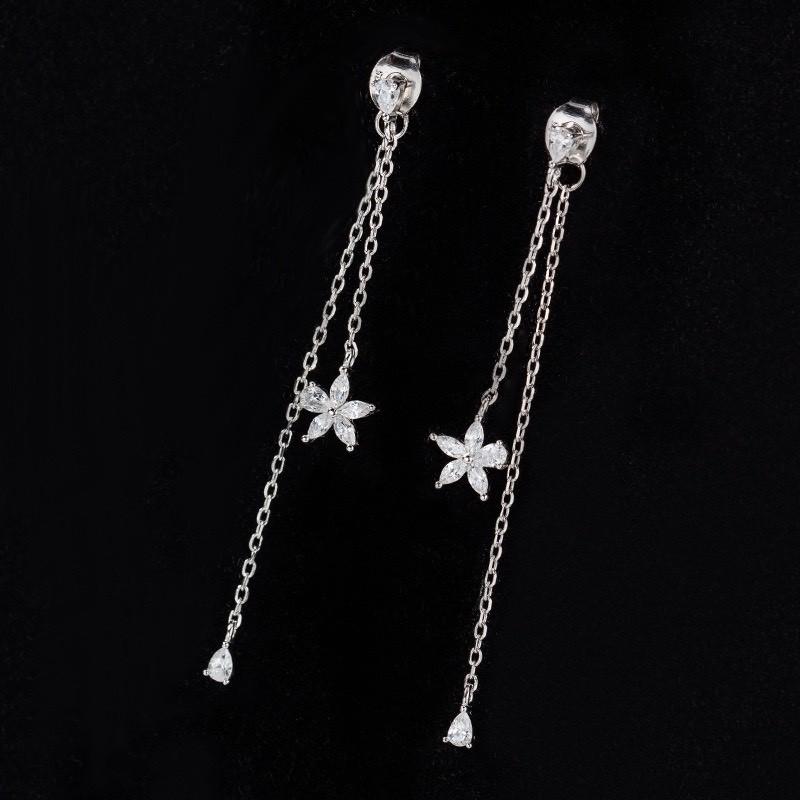 • Khuyên tai bạc 925 hoa 5 cánh thả xích duyên dáng thanh lịch tiểu thư Dế Bạc - K5675