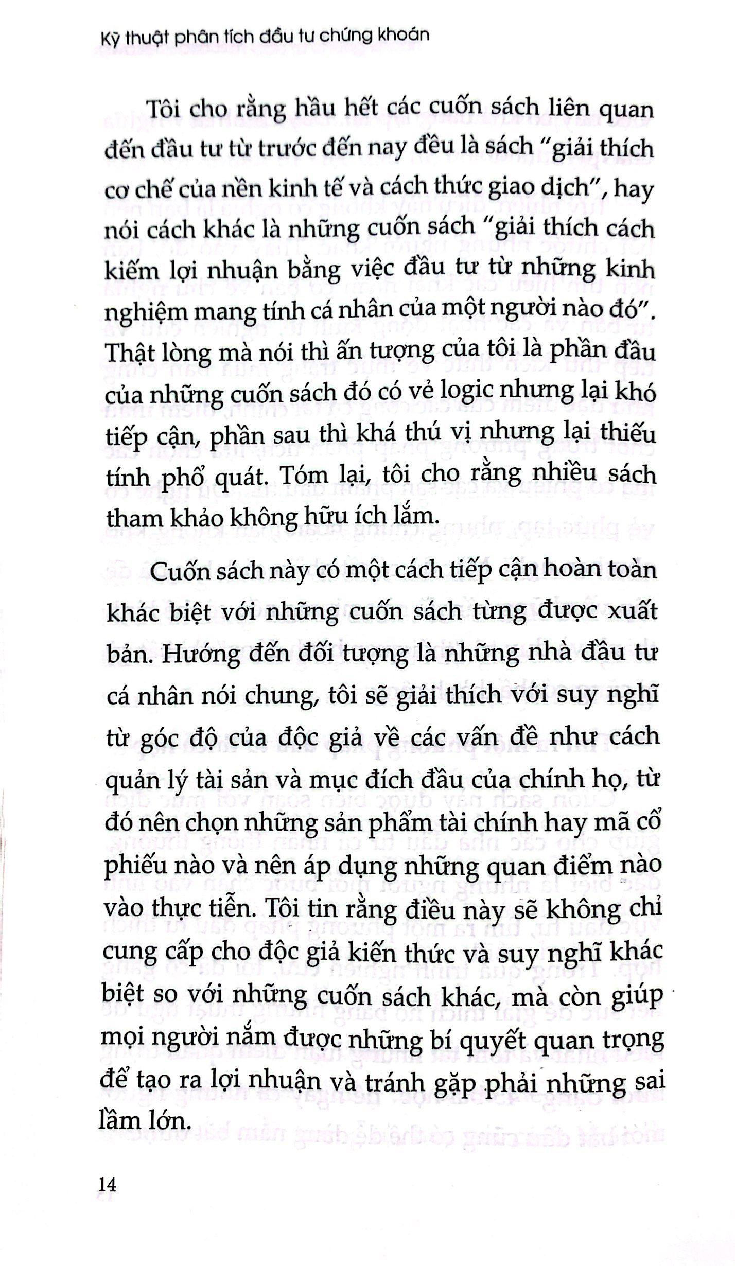 • Cuốn sách này có một cách tiếp cận hoàn toàn khác biệt với những cuốn sách từng được xuất bản. Hướng đến đối tượng là những nhà đầu tư cá nhân nói chung, tôi sẽ giải thích với suy nghĩ từ góc độ của độc giả về các vấn đề như cách quản lý tài sản và mục đích đầu của chính họ, từ đó nên chọn những sản phẩm tài chính hay mã cổ phiếu nào và nên áp dụng những quan điểm nào vào thực tiễn. Tôi tin rằng điều này sẽ không chỉ cung cấp cho độc giả kiến thức và suy nghĩ khác biệt so với những cuốn sách khác, mà còn giúp mọi người nắm được những bí quyết quan trọng để tạo ra lợi nhuận và tránh gặp phải những sai lầm lớn.