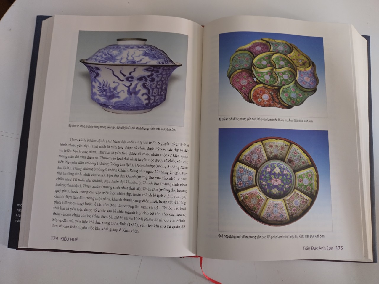 - Phụ lục: Shipouyaki Nhật Bản ở Bruxelles và pháp lam Huế ở Tokyo Ấn triện triều Nguyễn ở di tích Huế Biên chung, biên khánh, bác chung, đặc khánh ở Bảo tàng CVCĐ Huế Đồ ngự dụng xứ Huế Hoành phi câu đối trong ngôi nhà Huế Ngự viên thời Nguyễn và tranh gương cung đình Huế Vũ hội áo dài trên bức trấn phong xưa Tranh tường An Định Cung: nhiều câu hỏi lớn chưa lời đáp! Những bộ đầu hồ xưa Hai bộ xăm hường ở Huế xưa Tranh làng Sình Xe kiệu thời Nguyễn Xem bảo vật hoàng cung triều Nguyễn tại Bảo tàng CVCĐ Huế Cổ vật triều Nguyễn ở nước ngoài (*)