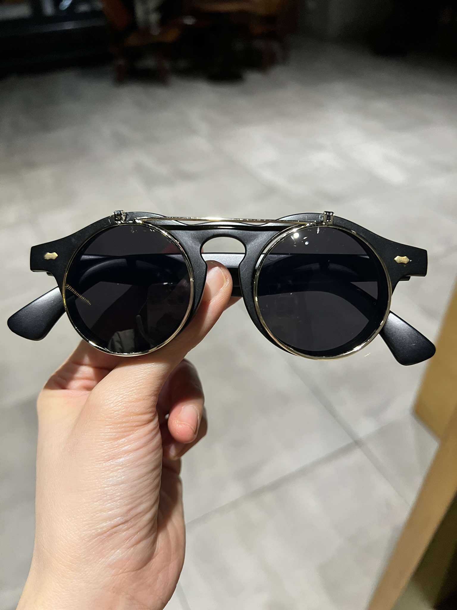 ✨Kính chống nắng Mắt tròn thầy bói 2 lớp mở nắp gọng nhựa