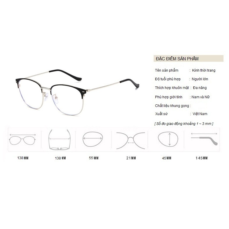• Kính gọng hợp kim cao cấp. Free size vừa mọi cỡ mắt, cỡ đầu. Phù hợp cả nam và nữ mọi lứa tuổi. • Chất liệu bền đẹp, mang lại cảm giác thoải mái