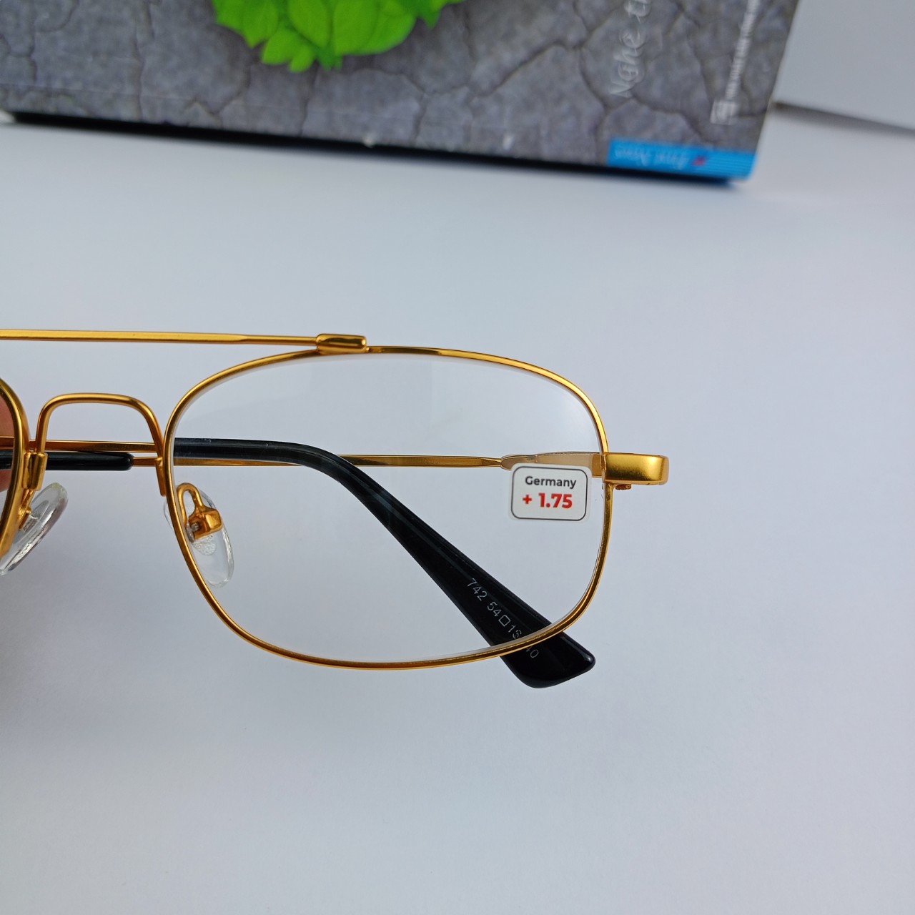 MÔ TẢ CHI TIẾT SẢN PHẨM: -tròng kính thủy tinh sản xuất tại đức - Form kính : vuông - Màu sắc: Vàng - độ từ +0.5- +4.0 - Gọng kiếng đường nét tinh xảo