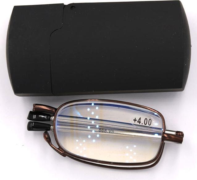 Mắt kính gọng xếp với chân gọng inox rút ra như anten, xếp trong hộp nhỏ xinh xắn, rất thuận tiện mang theo người, tròng kính nhựa cường lực siêu mỏng, ( loại tròng kính lão siêu mỏng như vậy không bán trên thị trường Việt Nam vì giá thành cao ).