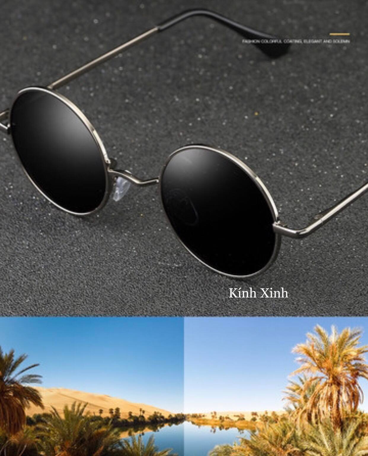 Kính râm Mắt Tròn Tròng Thủy Tinh Cao Cấp Gọng Kim Loại Chống Nắng UV Chất liệu: Gọng Kim loại mạ xi cao cấp, bền màu - Tròng Thủy Tinh Kim Cương Chống Vỡ Tròng