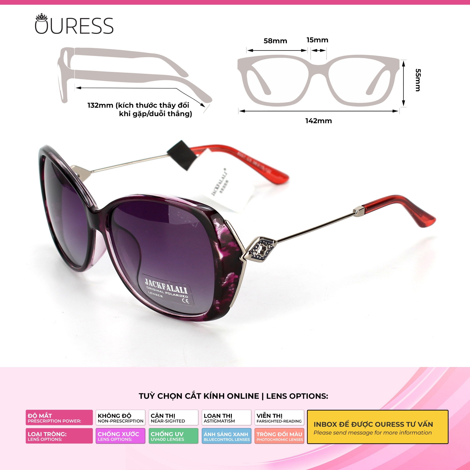 Chống tia UV 100% – Bảo vệ mắt tuyệt đối Thiết kế sang – xịn – mịn, mix mọi style đều hợp Gọng kính chắc chắn, đeo cực êm – không hề đau tai Lựa