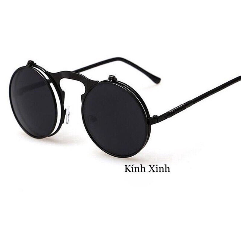 Mua tại Tiktok- Kính râm Mắt Tròn Nhỏ 2 Lớp Lật Nắp Gọng Lò Xo Cao Cấp