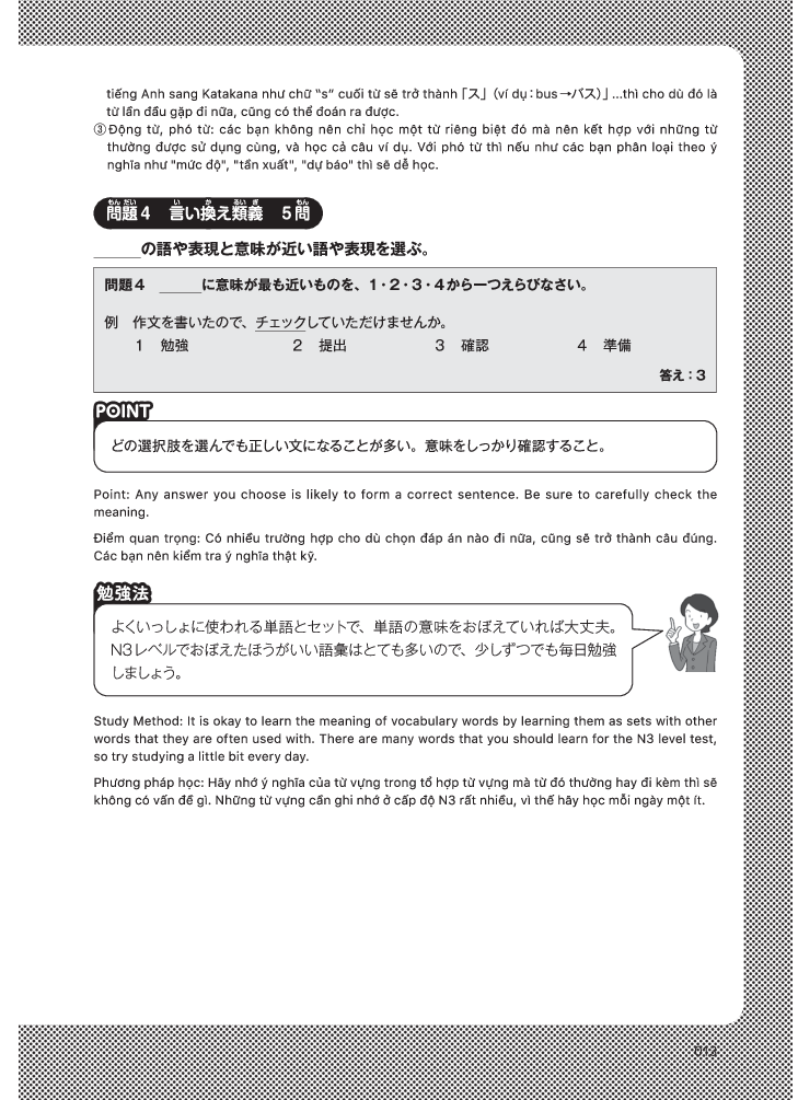 - Bao gồm 3 đề luyện thi Kỳ thi năng lực Nhật ngữ cấp độ N3.