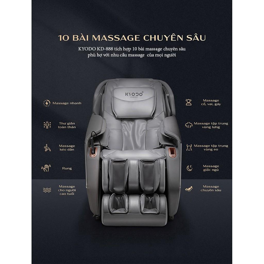 Model KD-888 Thương hiệu KYODO Màu sắc Ghi-đỏ Chất liệu da Da PU cao cấp Công suất định mức 150W Điện áp 220-240V,50/60Hz Số lượng túi khí 60(Vai, tay, hông, bắp chân, bàn chân) Remote