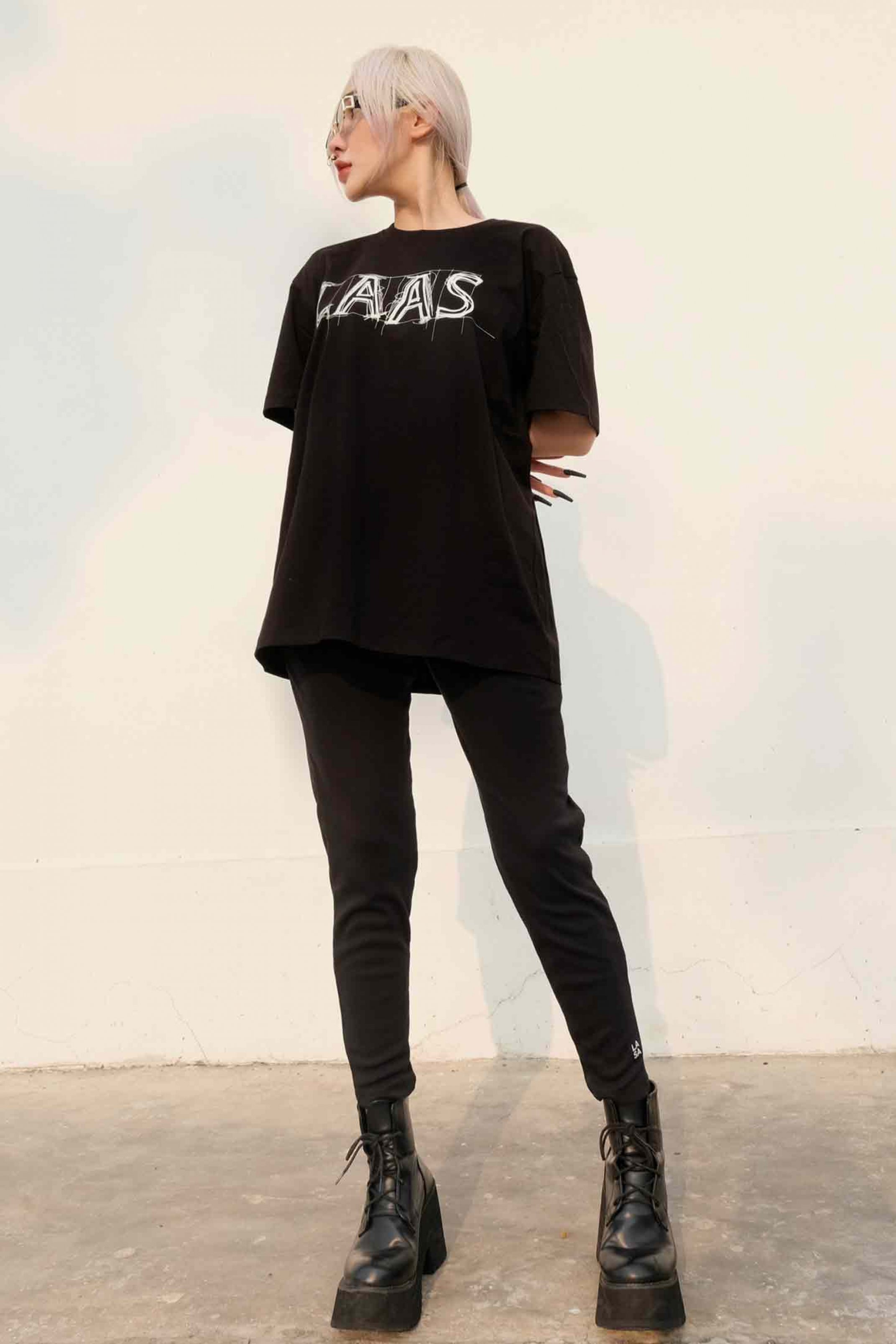 Mua tại Tiktok100% COTTON 2 CHIỀU, DÀY DẶN THOÁNG MÁT ÁO MÀU ĐEN FORM RỘNG ĐIỂM NHẤN HÌNH IN CHỮ LAAS MÀU TRẮNG