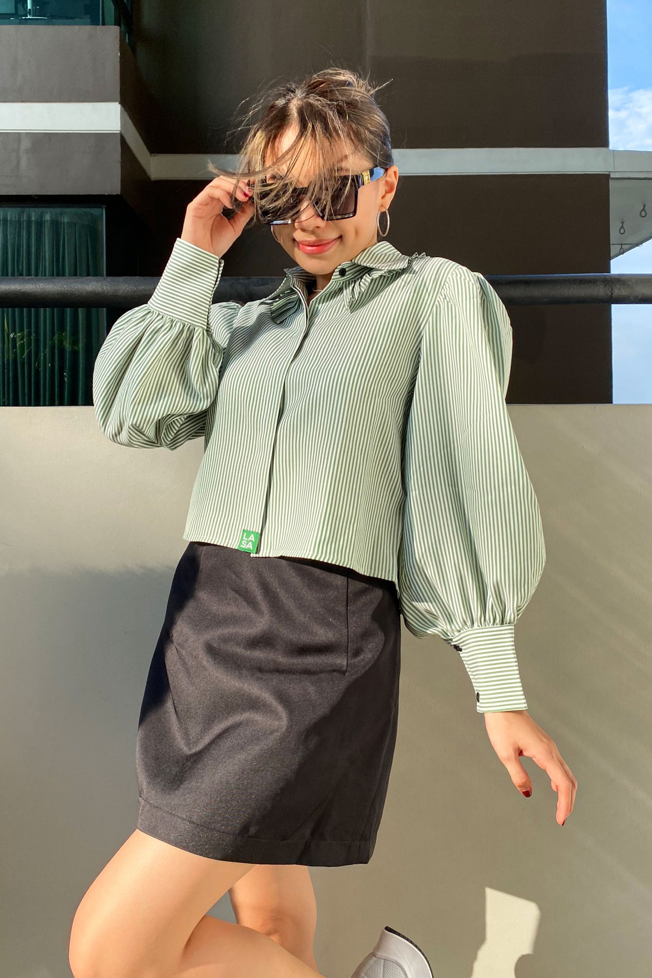 Sơ Mi Kẻ Sọc Tay Bồng – Nét Nữ Tính Chuẩn Công Sở