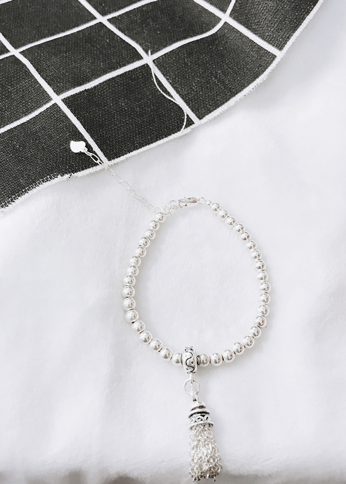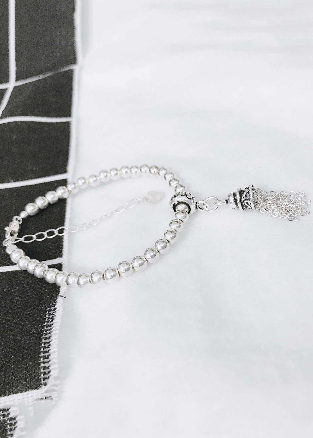 LẮC BI BẠC 3MM CHARM CHUÔNG TUA BẠC