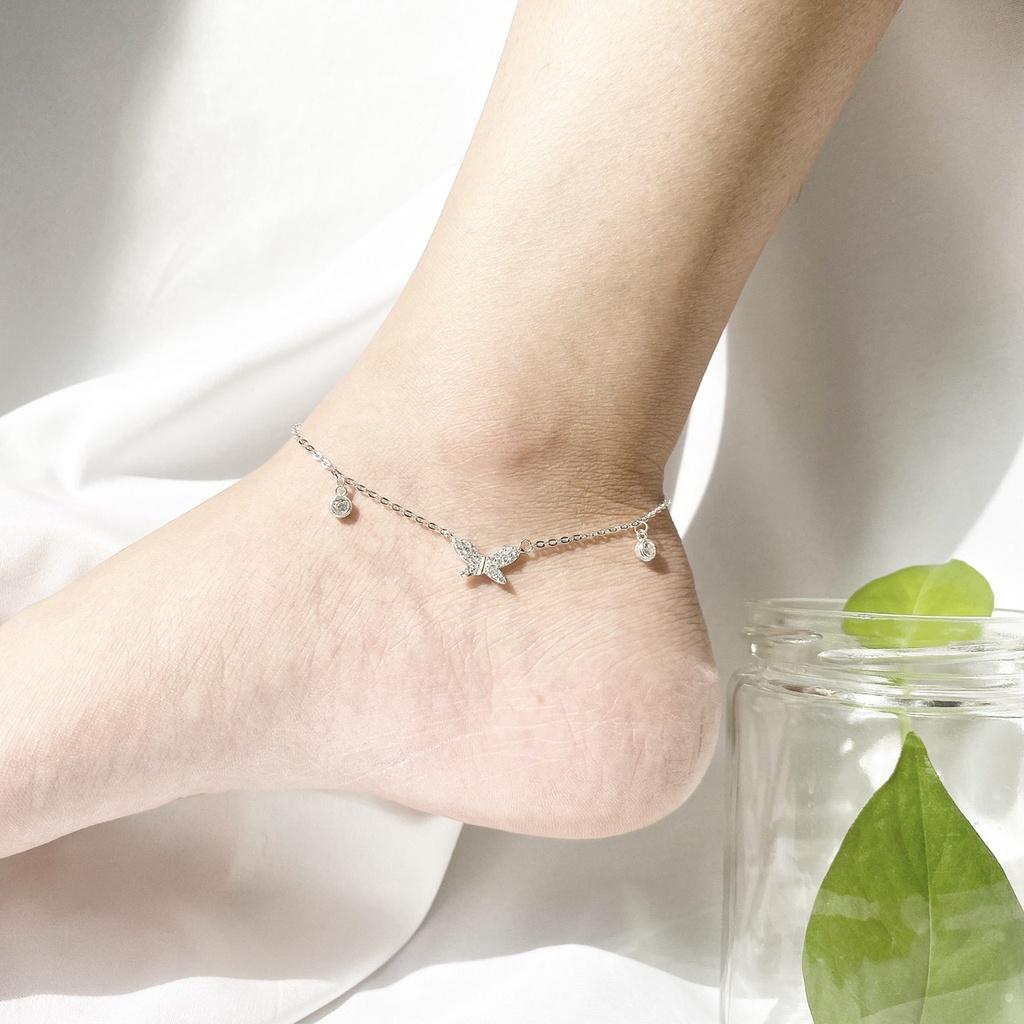 ✨Lắc chân bạc 925 butterfly treo tiny đính pha lê xinh xắn dễ thương Dế Bạc – LC4392