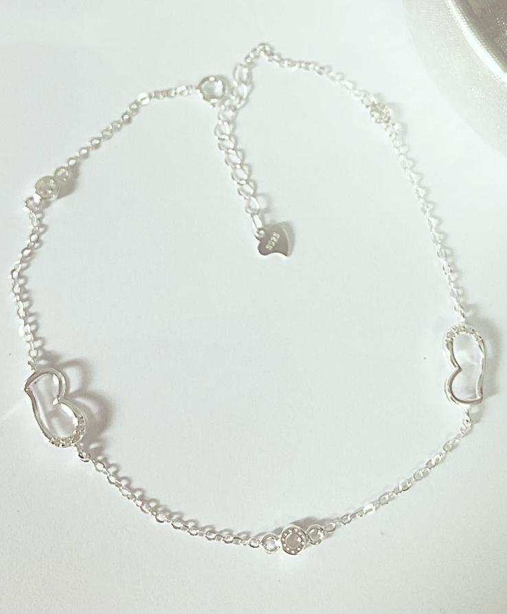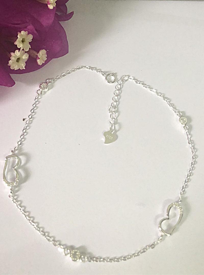 Lắc chân được chế tác từ bạc cao cấp S925 Lắc chân với thiết kế đơn giản bao gồm hai trái tim đính đá thể hiện tình cảm nồng nàn của người tặng và sự