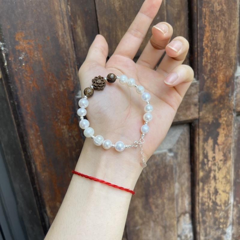 Mua tại TiktokLắc Tay Ngoc_Trai Mix Hoa Sen Trầm Hương Sánh Chìm - Lắc Bạc Ta Cao Cấp - Phù Hợp Tất Cả Các Mệnh