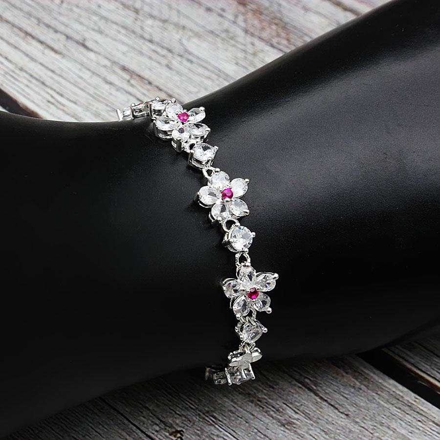 Lắc Tay Nữ Bạc Hiểu Minh LTU525 Hoa 5 Cánh Màu Trắng