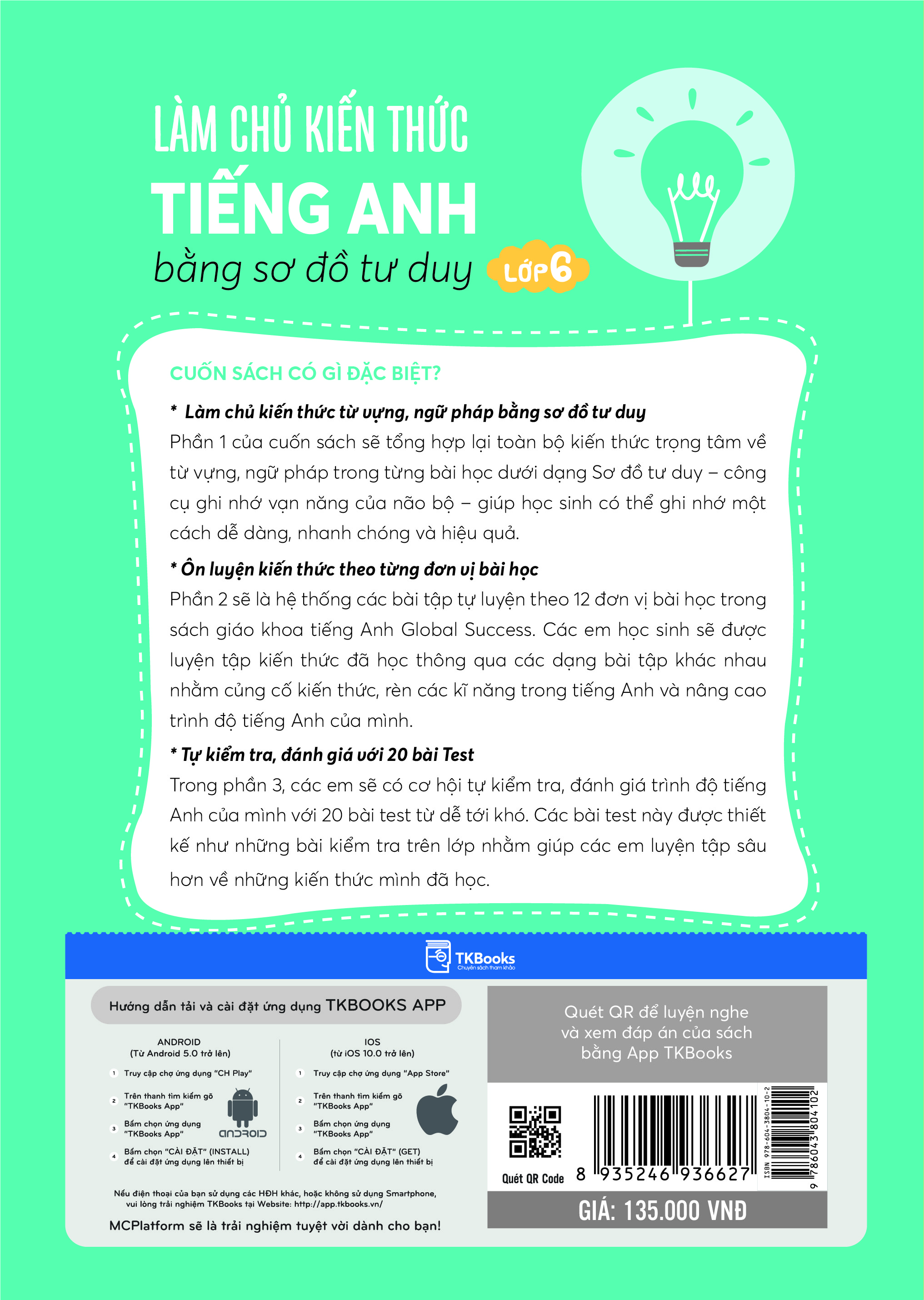 Cuốn sách “Làm chủ kiến thức tiếng Anh bằng sơ đồ tư duy Lớp 6 ” sẽ giúp bạn: