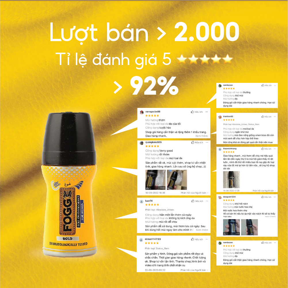 - Với cơ chế hoạt động khác hẳn những sản phẩm thông thường, Lăn khử mùi Fogg giúp kiểm soát đến 90% lượng mồ hôi trong 3 đến 5 ngày.