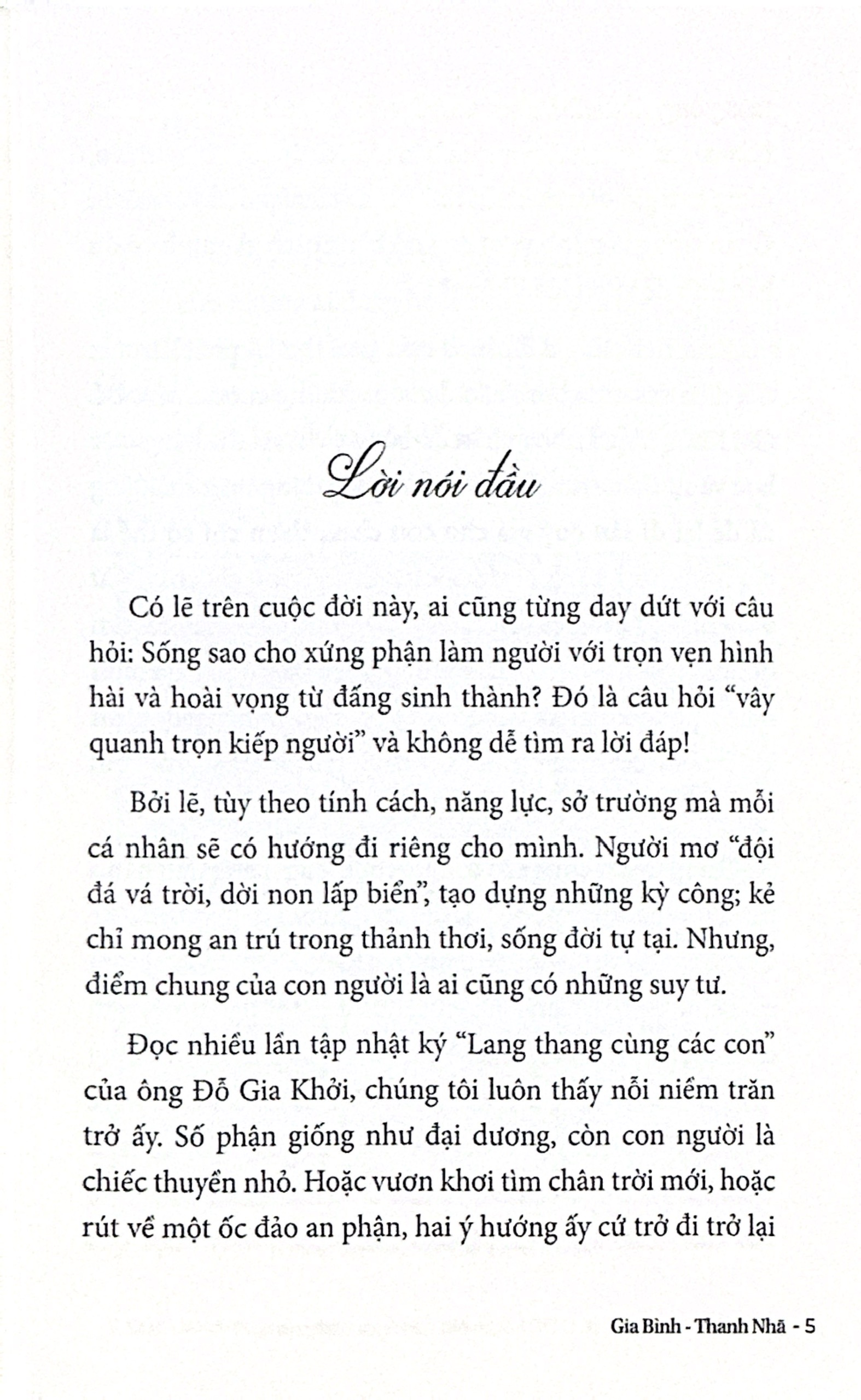 Lang thang cùng các con không chỉ dành cho gia đình tác giả mà còn là món quà tinh thần cho bạn đọc. Cuốn sách nhắc rằng: mỗi người đều có một câu chuyện đáng kể.