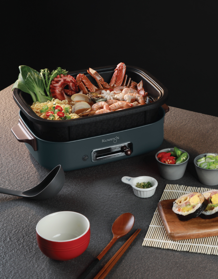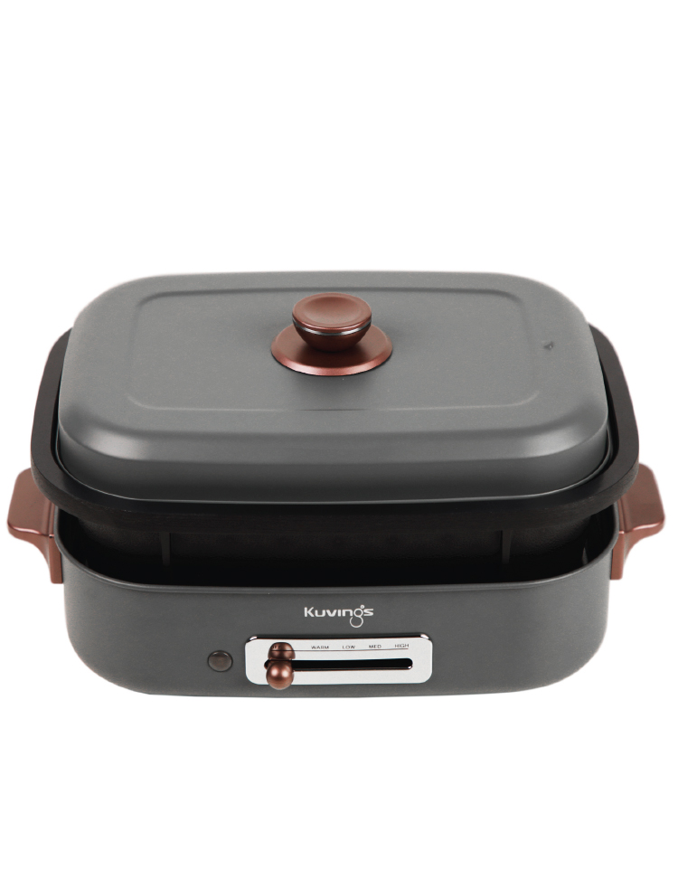 Nhằm đáp ứng sở thích ăn các món nướng và lẩu tại nhà mà không chứa nhiều dầu mỡ và an toàn cho người sử dụng. đã cho ra đời những mẫu Lẩu điện phủ gốm Ceramic đa năng hiệu cao cấp tại thị trường Việt Nam. Lẩu điện phủ gốm Ceramic đa năng Kuvings 2 trong 1 KMG-200B được sản xuất từ linh kiện cao cấp có độ bền cao không chứa chất độc hại. Thiết kế nhỏ gọn, sang trọng, hiện đại và an toàn theo phong cách “Newtro”.