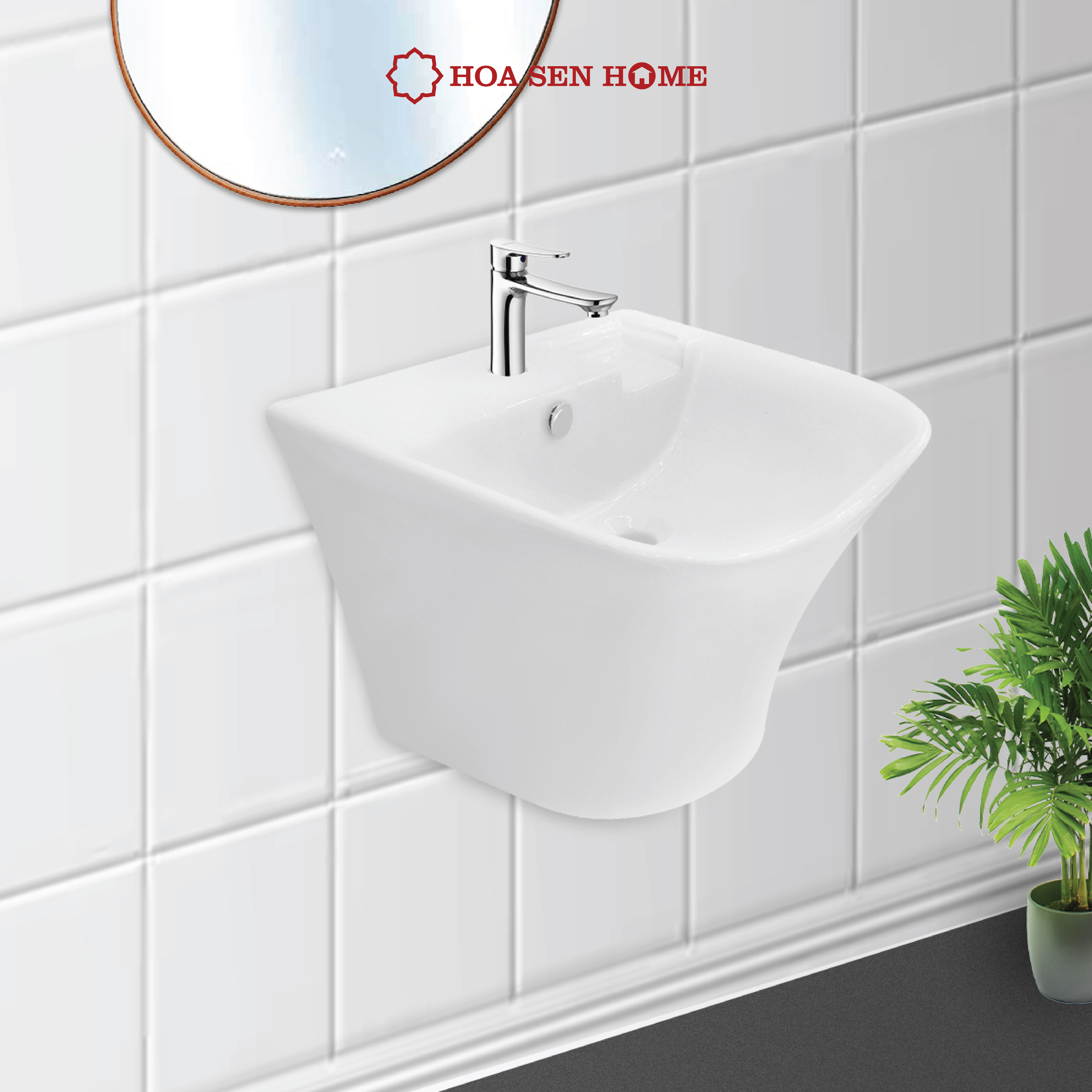 Lavabo treo tường TUSLO COCL001 liền thân được chế tạo từ chất liệu sứ Ceramic trắng sáng, tráng men Nano Titan kháng khuẩn, với thiết kế viền mỏng thanh lịch và kiểu dáng uốn cong