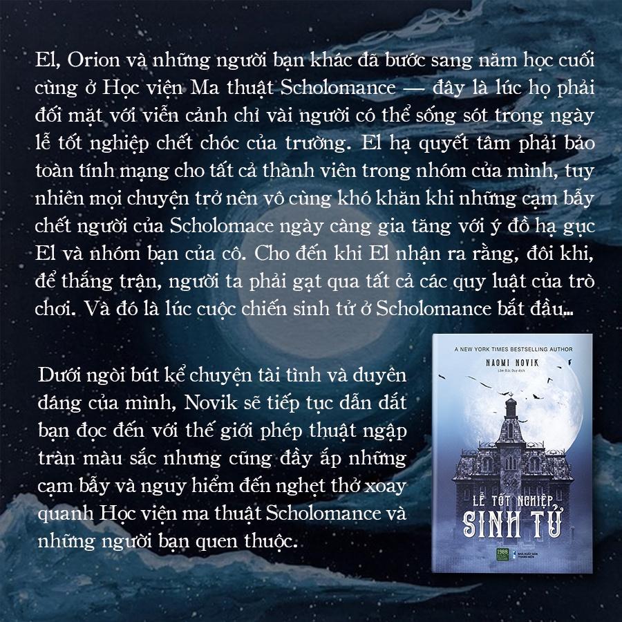 Dưới ngòi bút kể chuyện tài tình và duyên dáng của mình, Novik sẽ tiếp tục dẫn dắt bạn đọc đến với thế giới phép thuật ngập tràn màu sắc nhưng cũng đầy ắp những cạm bẫy và nguy hiểm đến nghẹt thở xoay quanh Học viện ma thuật Scholomance và những người bạn quen thuộc.