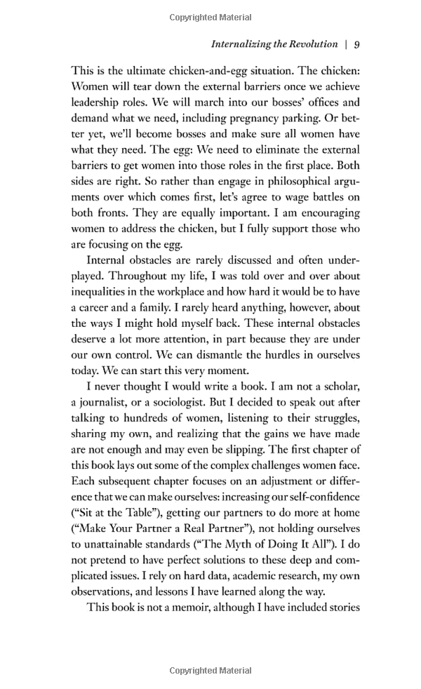 Thirty years after women became 50 percent of the college graduates in the United States, men still hold the vast majority of leadership positions in government and industry. This means that women’s voices are still not heard equally in the decisions that most affect our lives. In Lean In, Sheryl Sandberg examines why women’s progress in achieving leadership roles has stalled, explains the root causes, and offers compelling, commonsense solutions that can empower women to achieve their full potential.