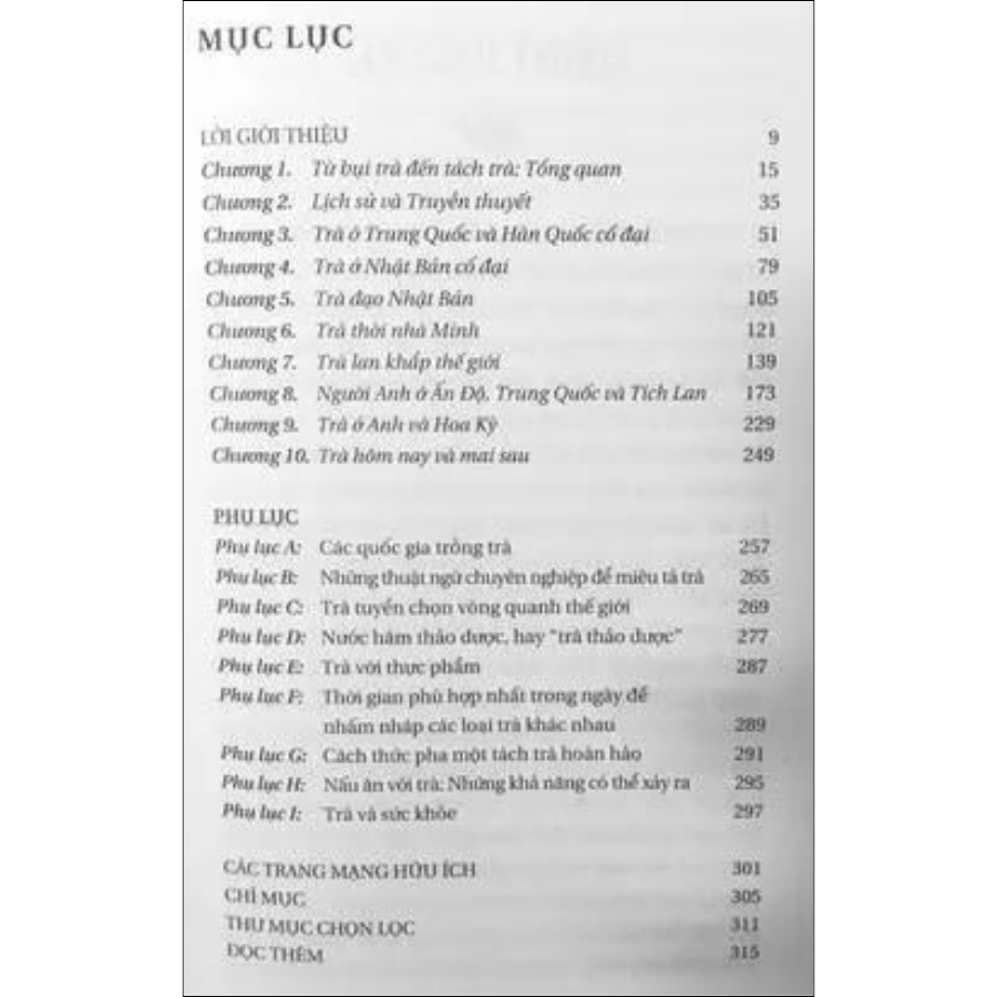 LỊCH SỬ CỦA TRÀ cung cấp một cái nhìn tổng quát, tinh tế và đầy thú vị về dòng chảy hai ngàn năm của thứ đồ uống quyền lực này, đưa chúng ta du ngoạn qua vùng rừng núi Trung Quốc với những câu chuyện thần thoại, qua phòng trà Nhật Bản với các nghi thức trà đạo khắt khe, qua cả những bữa tiệc trà phù phiếm tại Anh hay các đồn điền trà bát ngát ở Ấn Độ và Sri Lanka.