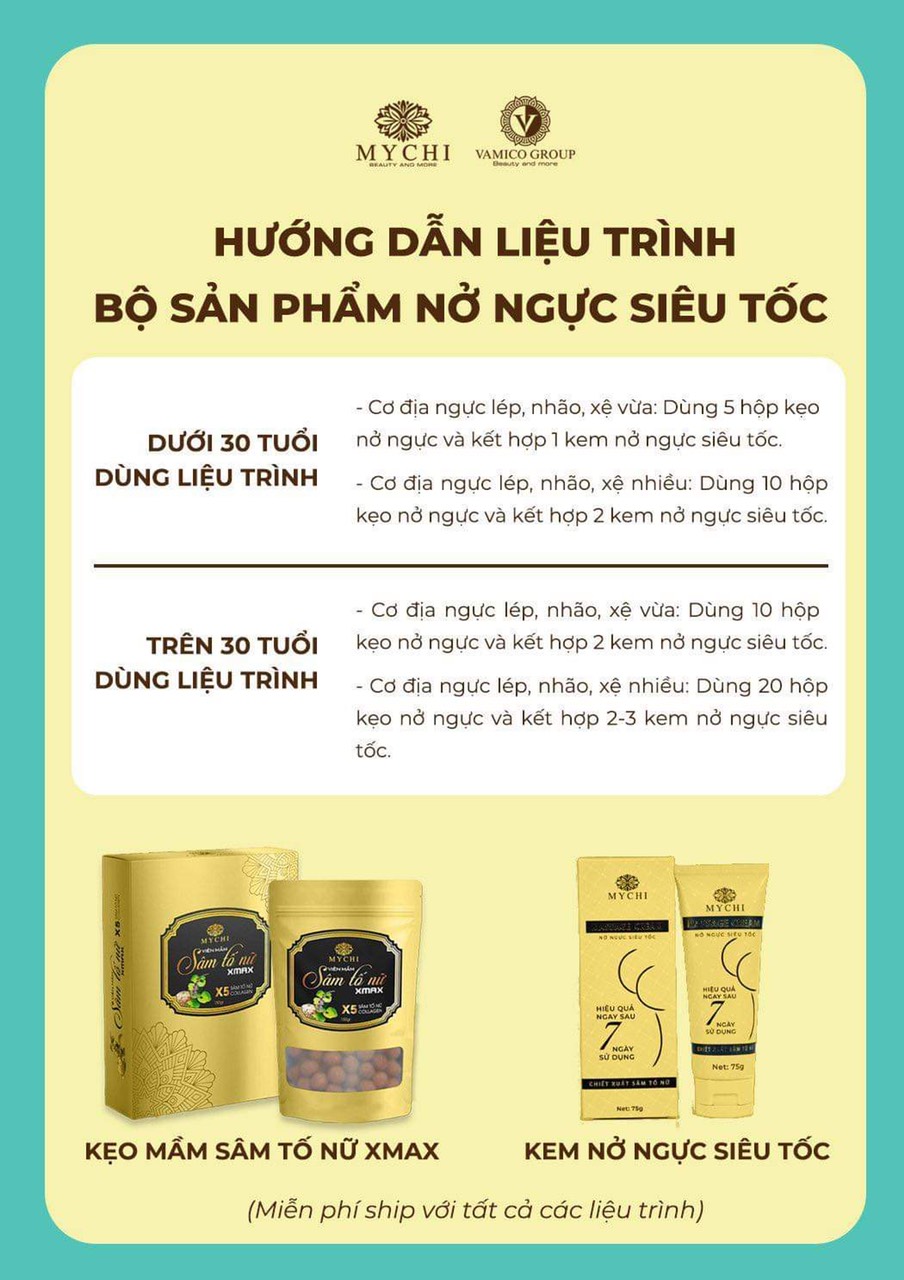 ✨Liệu trình 3h Kẹo mầm sâm tố nữ Xmax Mychi và Kem nở ngực Mychi Massage Cream