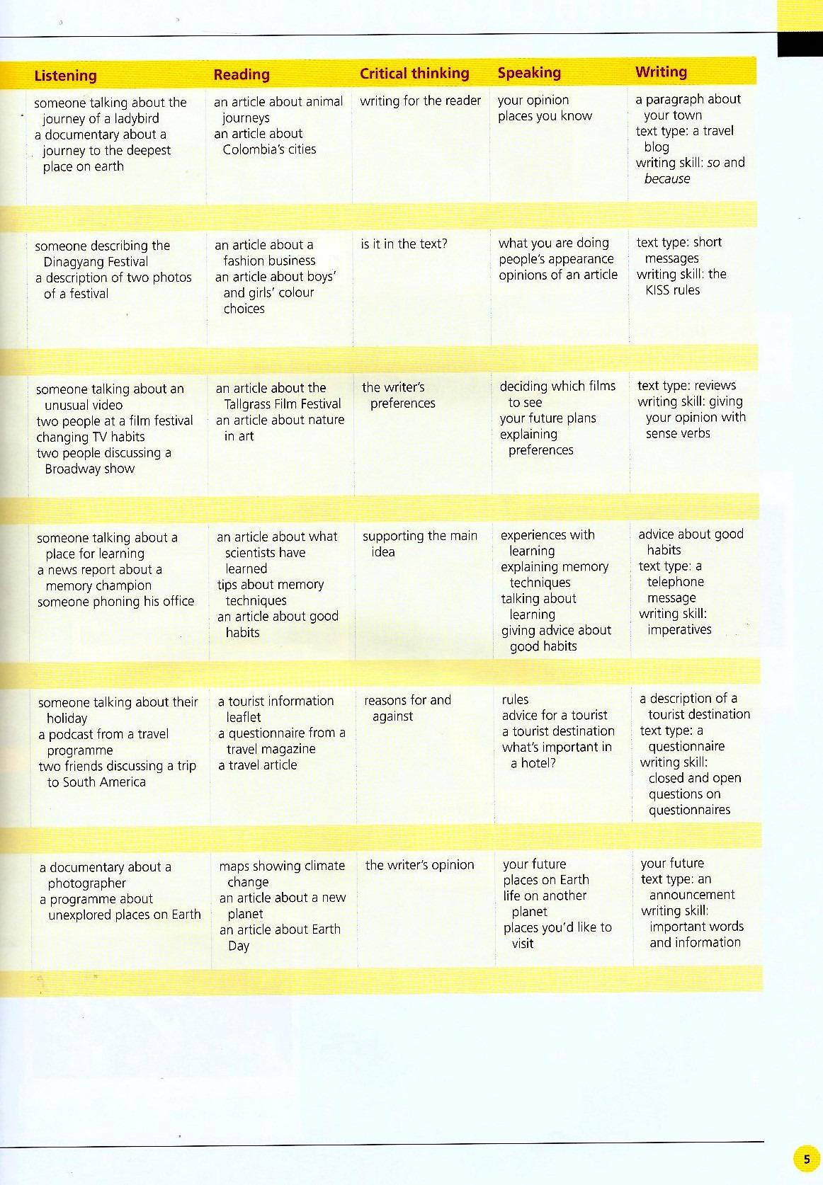 English World Level 5 Pupil's Book + eBook Pack The Pupil's Book contains twelve units with each unit designed to be taught over a two-week period. The key skills of reading, writing, speaking and listening